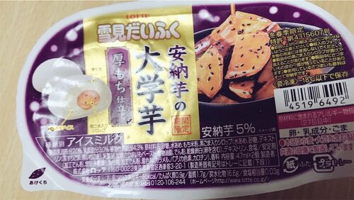 どーも、PlugOutです。 ちょっと更新が滞ってたので、久しぶりの投稿です。 皆さんご存じロッテから、人気の「雪見だいふく」の新商品が発売されたので買ってみました。 それがこちら! 「雪見だいふく『安納芋の大学芋』」 やはり「雪見だいふく」といえば…